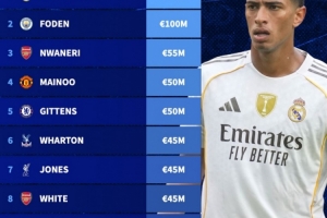 未入选本次英格兰名单身价榜:贝林厄姆居首,福登、恩瓦内里在列